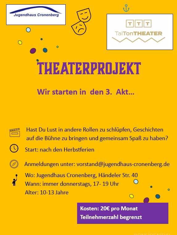 Immer wieder (dienstags) Theater im Kinder- und Jugendhaus! Sei dabei! Sendet Eure Anmeldung via E-Mail. Hier könnt ihr natürlich auch noch nach herzenslust fragen stellen 😉